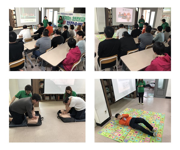 실습용 애니를 이용하여 직접 심폐소생술을 해보며